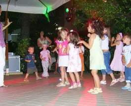 Für den Tag: Kinderstuehle, bunte Teller und Servietten zu den Mahlzeiten, Kinderbadewanne, Kinderanimation, Kinderfahrraeder